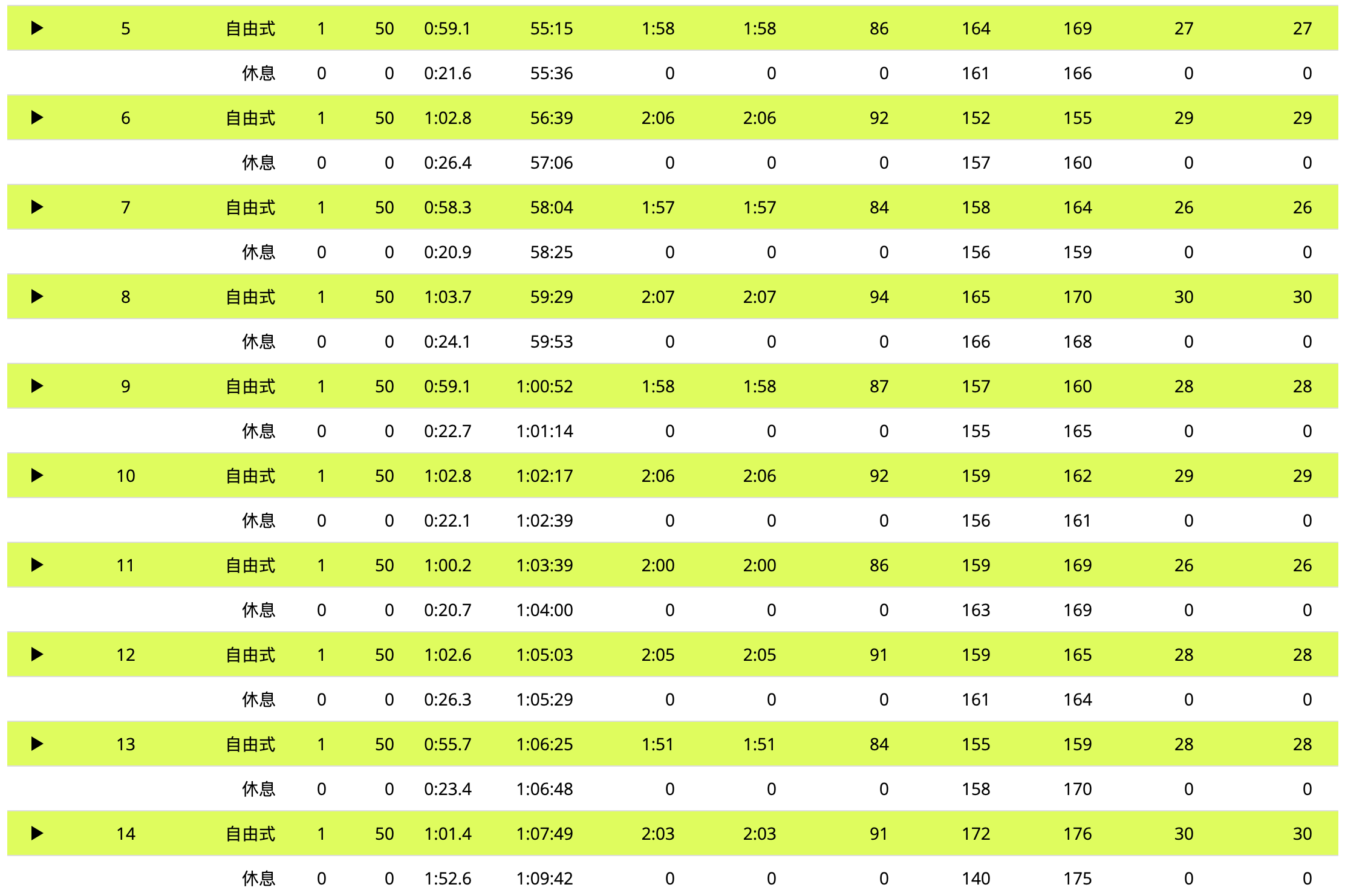 B組: 10 x 50m @ 1:15 (含休息時間)
