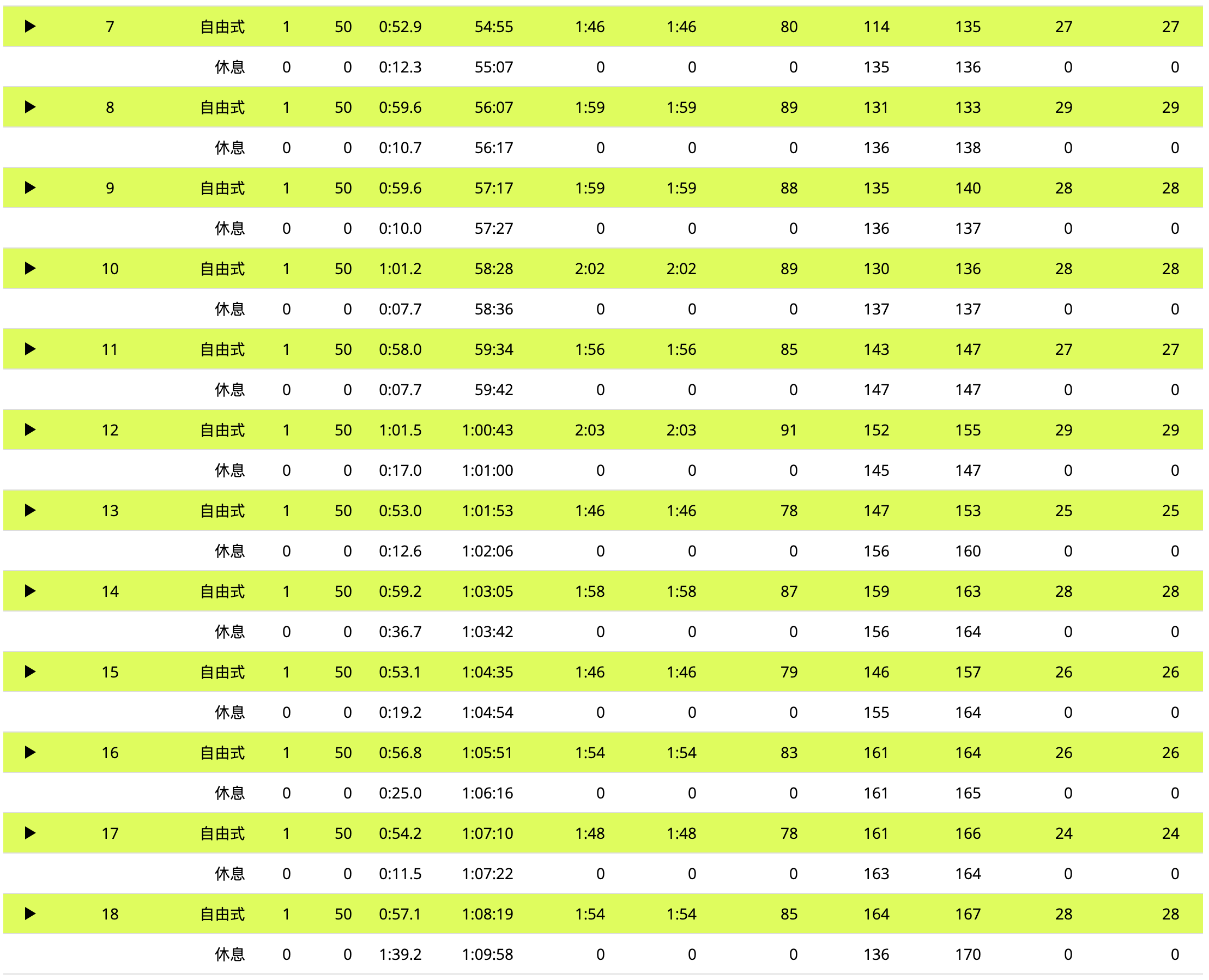 C組: 8 x 50m @ 2:00 (含休息時間)
