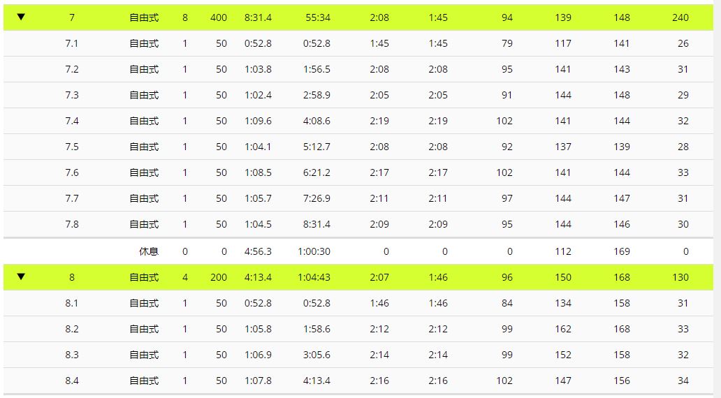 C組: 8 x 50m @ 2:00 (含休息時間)
